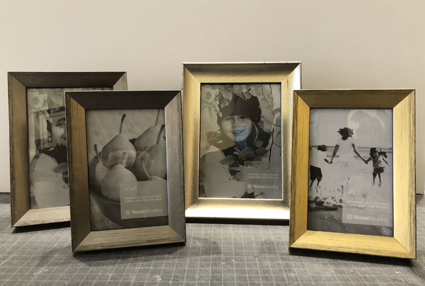 Stop by to see our selection of table top photo frames. Sizes available: 4″ x 6″ and 5″ x 7.”
